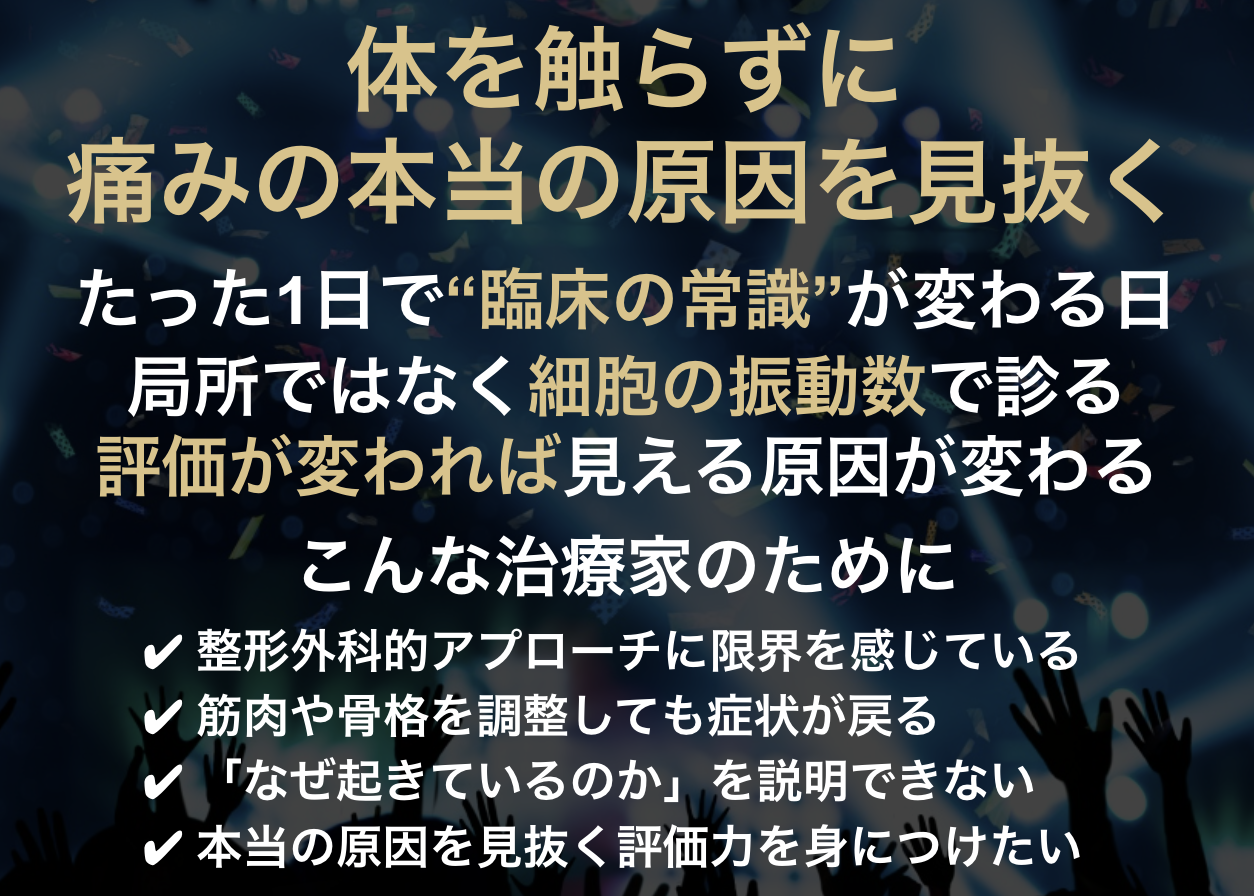 あなたの臨床を「当てもの」から、細胞振動を読み解く「精密な設計」に変える。